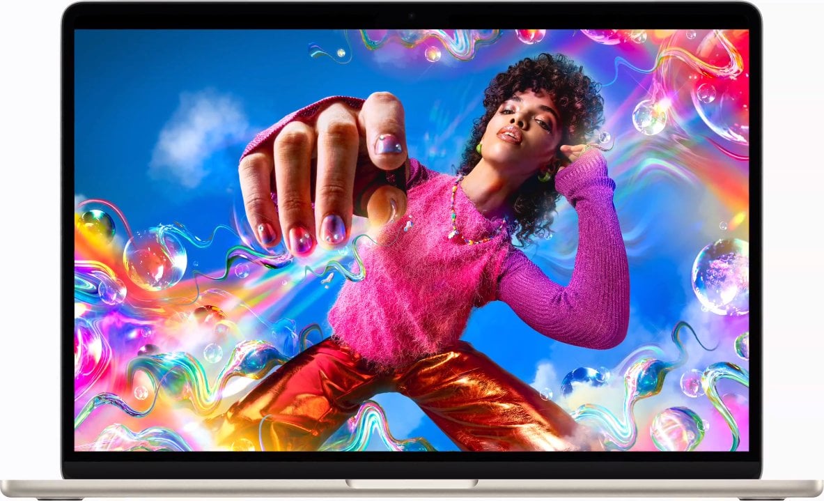 Przedstawiamy nowego, 15‑calowego MacBooka Air. Z wielkim wyświetlaczem Liquid Retina, na którym Twoje ulubione działania nabierają skali. Turbodopalany czipem M2, z baterią nawet na 18 godzin, łącząc ultrawydajność z superporęcznością. Zatem nie tylko MacBook Air, ale i lista powodów, żeby go mieć, właśnie się powiększyła. Dzięki konstrukcji bez wentylatorów MacBook Air nawet najbardziej wymagające zadania wykona bezszelestnie.