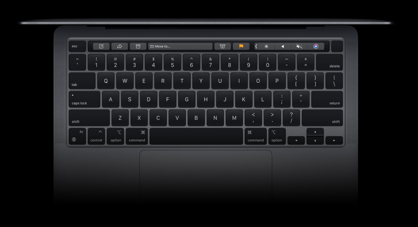 Wyspowa konstrukcja klawiatury Magic Keyboard nowego MacBooka Pro odznacza się wyjątkowo cichą pracą klawiszy i idealnie dobranym skokiem, dzięki którym swoje teksty stworzysz jeszcze łatwiej i przyjemniej. Dyskretne i eleganckie podświetlenie klawiatury docenisz zarówno podczas spotkań, jak i nocnej pracy czy pogawędek. Nawet jeżeli nie piszesz bezwzrokowo, dzięki niemu odnalezienie właściwego klawisza nigdy już nie będzie problemem.