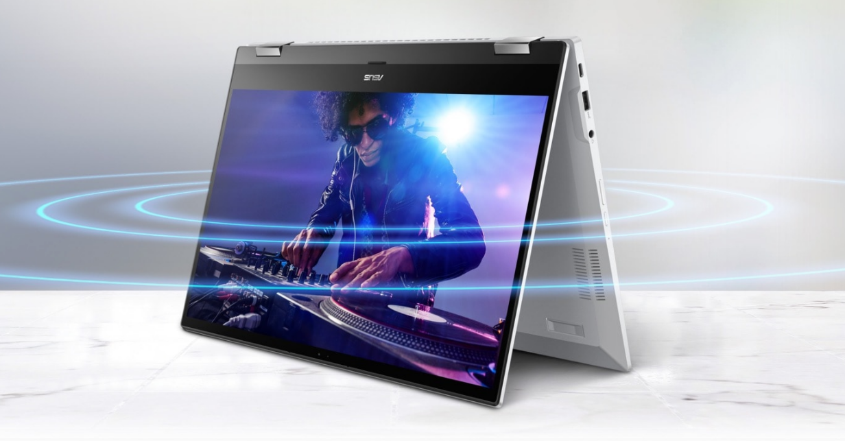 ASUS Chromebook Flip CX5 oferuje doskonały dźwięk w urządzeniu o smukłej, lekkiej konstrukcji. Dysponując dwoma wysokiej jakości głośnikami stereo i bardzo dużymi komorami rezonansowymi, które emitują dźwięk hi-fi, zapewnia efekty dźwięku wielokanałowego porównywalne do jakości spotykanej w większych laptopach. Dynamiczny i mocny dźwięk zapewnia Ci bardziej immersyjne wrażenia dźwiękowe podczas strumieniowania muzyki lub filmów.