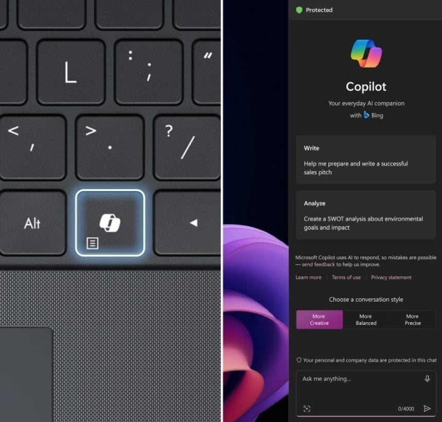 Copilot w systemie Windows z ochroną danych komercyjnych to Twój roboczy asystent AI. Zwiększ produktywność i osiągaj więcej – szybciej i prościej dzięki Copilot. Skorzystaj z codziennej pomocy asystenta AI, ze specjalnym przyciskiem Copilot. Wystarczy jedno kliknięcie, aby zyskać dostęp do niezliczonych możliwości.
