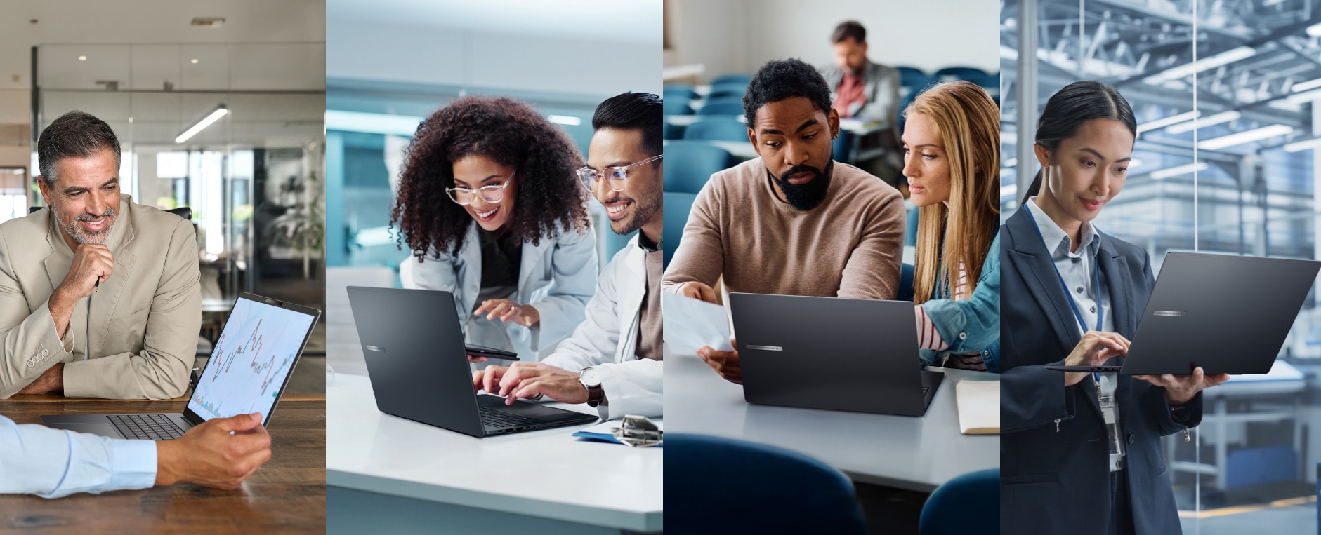 ASUS ExpertBook B5 doskonale sprawdza się również w zastosowaniach komputerowych dla pracowników firm, oferując łatwo dostosowywane rozwiązania i obsługując szereg elastycznych konfiguracji dla zaspokojenia konkretnych potrzeb, z różnymi opcjami. Urządzenie wyróżnia się ultralekką, najwyższej jakości konstrukcją, zapewniając idealną równowagę między mocą obliczeniową i mobilnością. Dzięki temu udostępnia precyzyjnie dostrojoną wydajność do intensywnych procesów roboczych i umożliwia zwiększenie produktywności zarówno w drodze, jak i w sali konferencyjnej.