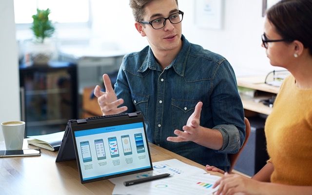 Możesz pracować zespołowo w trybie ułożenia na płasko pod kątem 180° lub przy ustawieniu „na stojaku”, a także sporządzać notatki bezpośrednio na laptopie ExpertBook B7 Flip. Nigdy więcej nie zaprzepaścisz doskonałego pomysłu!
