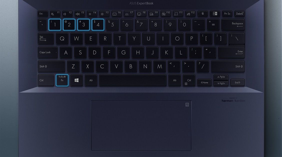ASUS ExpertWidget zapewnia większą produktywność, umożliwiając ustawienie własnych skrótów klawiszowych przy użyciu klawisza Fn wraz z klawiszami numerycznymi 1–4. Możesz na przykład skonfigurować klawisz skrótu do włączania Bluetooth® lub błyskawicznego otwierania najczęściej używanego foldera plików.
