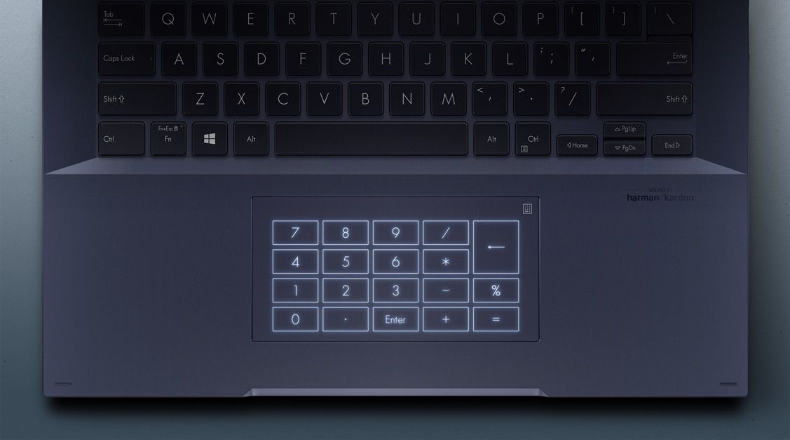 ASUS NumberPad to podświetlona diodami LED klawiatura numeryczna, która idealnie sprawdza się podczas wpisywania wielu liczb. Stuknij ikonę NumberPad w górnym prawym rogu touchpada, aby go włączyć. Inteligentne oprogramowanie umożliwia Ci sterowanie kursorem, nawet gdy NumberPad jest aktywny.