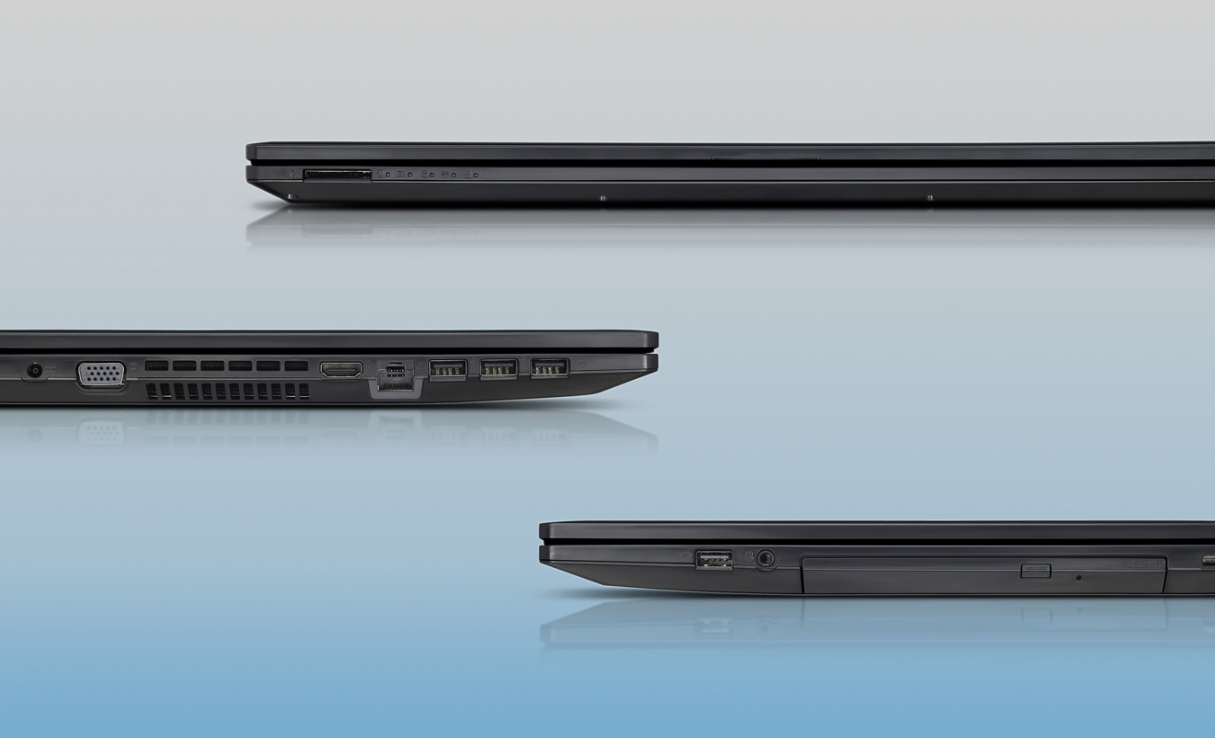 Dysponując pełnym zestawem gniazd wejścia/wyjścia, możesz bez trudu podłączyć do laptopa P2540 różne posiadane urządzenia. Do podłączania monitorów, telewizorów lub projektorów możesz skorzystać z gniazda HDMI lub VGA (D-Sub), a dodatkowo laptop P2540 jest wyposażony w czytnik kart SD do płatności w Internecie, trzy gniazda USB 3.1 Gen 1 (nawet 10 razy szybsze niż złącze USB 2.0), a także opcjonalny moduł z napędem DVD typu Super-Multi.