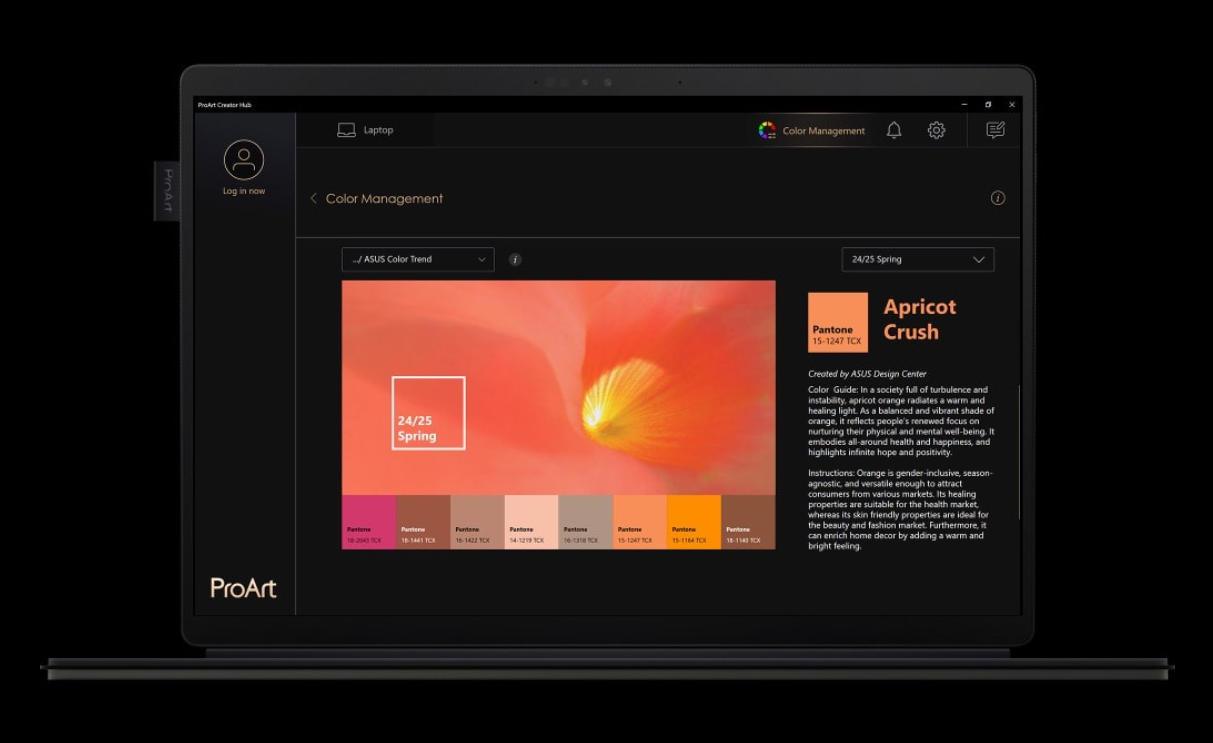 ProArt Creator Hub służy jako Twój osobisty portal do monitorowania stanu urządzenia, dostosowywania ustawień i optymalizacji przepływu pracy w celu zapewnienia nieograniczonej kreatywności. Zawiera przeglądowy pulpit sterowania, który umożliwia precyzyjne dostrojenie profili wentylatorów dla uzyskania optymalnej wydajności chłodzenia, zapewnia łatwy dostęp do narzędzi kalibracji kolorów za pośrednictwem opcji kontroli kolorów oraz poprawia efektywność przepływu pracy i zarządzanie wydajnością dzięki funkcjom WorkSmart i Performance Optimization (Optymalizacji wydajności). Ponadto nowa funkcja zarządzania kolorami zapewnia precyzyjne dane o kolorach, umożliwiając Ci tworzenie i zapisywanie unikalnych palet kolorów. Jednocześnie będziesz zawsze na bieżąco z najnowszymi trendami kolorystycznymi, ciesząc się nieskończonymi inspiracjami. We współpracy z firmą Pantone® wykorzystaliśmy cyfrowe dane dotyczące kolorów, dzięki czemu możesz w pełni wyzwolić swoją kreatywność.