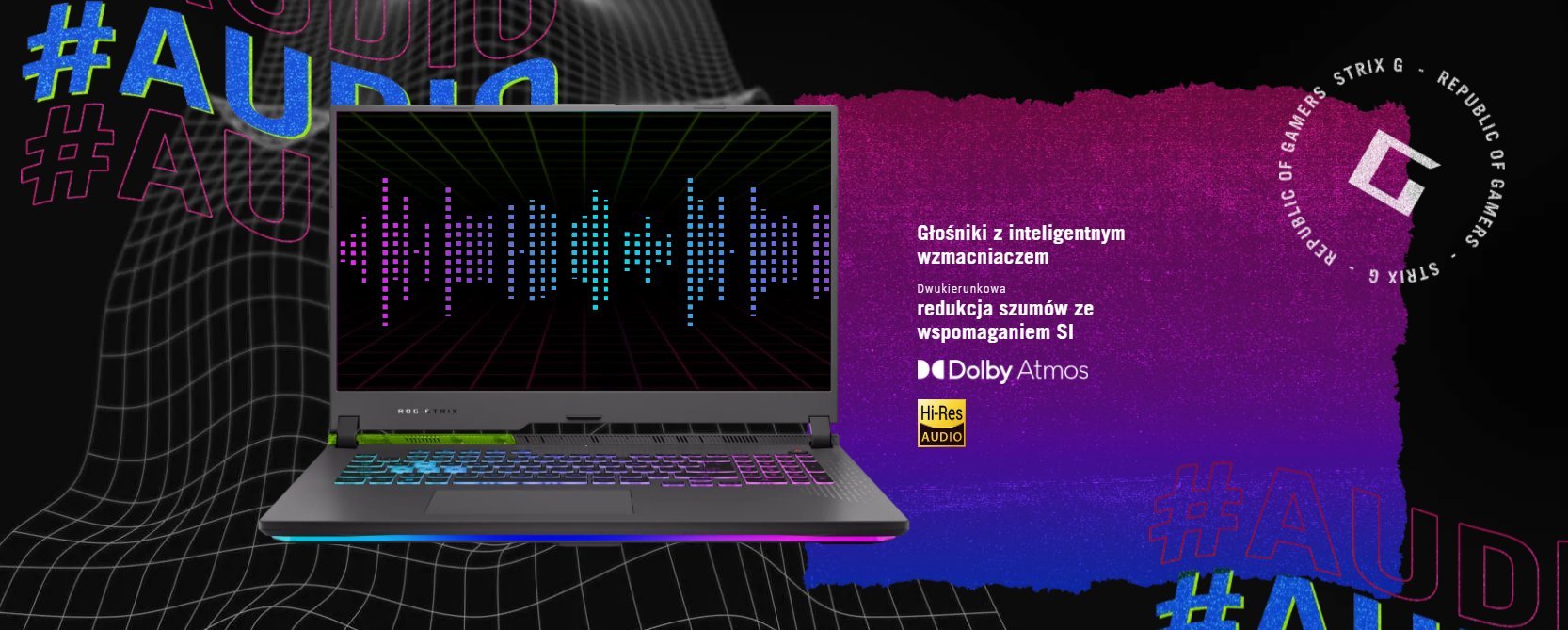 Głośniki z inteligentnym wzmacniaczem w połączeniu z technologią Dolby Atmos zwiększają immersję przestrzenną, oferując bardziej bogate w detale, wielopoziomowe efekty audio, które możesz zoptymalizować za pomocą trybów presetów specjalnie dostrojonych do filmów i gier. Dźwięk o wysokiej rozdzielczości gwarantuje najwyższą wierność odwzorowania podczas słuchania przez słuchawki. Technologia redukcji szumów wspomagana sztuczną inteligencją filtruje zarówno dźwięk na wejściu, jak i na wyjściu, zapewniając Ci krystalicznie czystą komunikację głosową – nawet przy dużym szumie w tle. Nigdy już nie przegapisz żadnego przywołania.