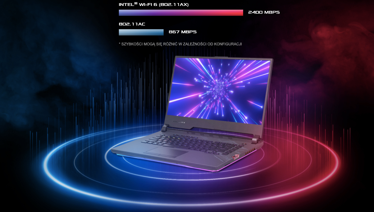Ultraszybka karta Intel® Wi-Fi 6 klasy Gig+ (802.11ax) zapewnia Ci niezakłóconą rozgrywkę z prędkością zbliżoną do sieci LAN, pod warunkiem dostępności kompatybilnego połączenia. Technologia Wi-Fi 6 (Gig+) oferuje szczytową przepustowość interfejsu na poziomie dochodzącym do 2,4 Gb/s, przy lepszej szybkości sieci, zwiększonej wydajności oraz niezawodności w zatłoczonych przestrzeniach. Ponadto redukuje latencję, co dla Ciebie oznacza mniej opóźnień podczas zastosowań czułych na zakłócenia, takich jak szybkie mecze gamingowe w drodze. Dopełnieniem funkcji Twojej karty sieciowej Wi-Fi 6 jest technologia ROG RangeBoost, która maksymalizuje pokrycie przestrzeni sygnałem. Specjalny algorytm RangeBoost ocenia siłę sygnału czterech anten wewnętrznych i wybiera najlepszą parę do wykorzystania w Twojej lokalizacji, minimalizując w ten sposób zjawisko martwych punktów i zwiększając zasięg sygnału o nawet 30%.