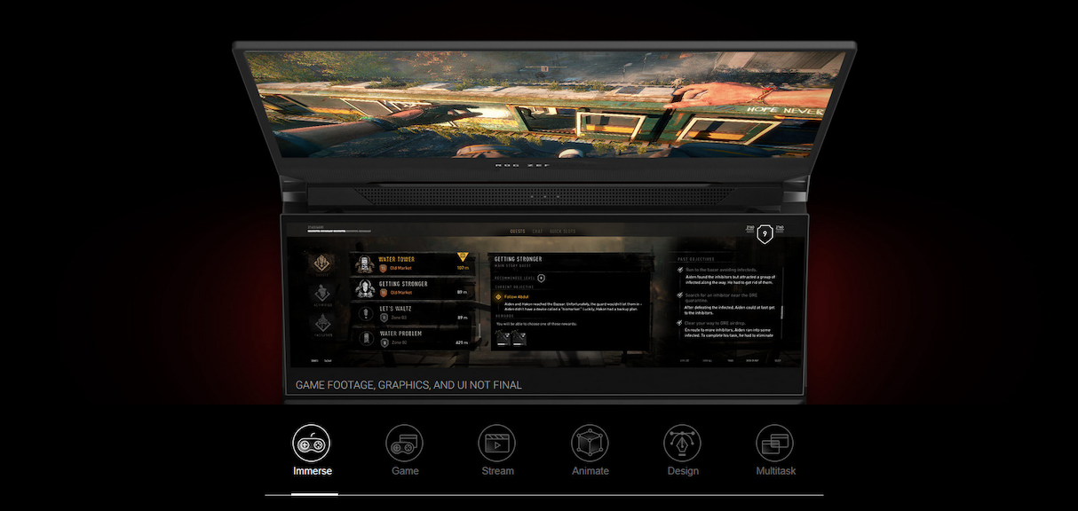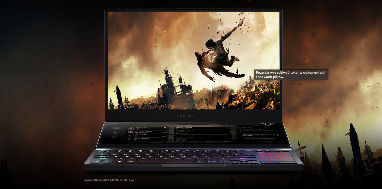 Zwiększysz swoją produktywność dzięki zintegrowanemu dodatkowemu ekranowi ROG ScreenPad Plus o rozdzielczości 1920 x 550 px. Wyświetlacz ScreenPad Plus jest nachylony pod kątem 13° dla zagwarantowania komfortu oglądania i ogromnie ułatwia pracę wielozadaniową. Ponadto wykorzystuje zoptymalizowane aplikacje, które zwiększą efektywność Twojego procesu pracy. Rozwiązanie to zapewnia Ci stałą kontrolę nad czatem i opcjami sterowania strumieniowaniem podczas rozgrywki na głównym ekranie. Cieszysz się większą powierzchnią roboczą do pracy nad swoimi kreatywnymi projektami, dysponując ponadto dodatkową przestrzenią ekranową na kluczowe narzędzia.
