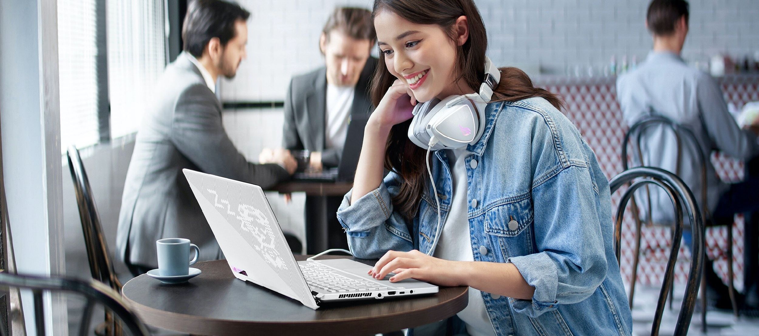 Szeroka gama portów sprawia, że G14 jest szczególnie elastyczny pod względem łączności. Podłącz drugi wyświetlacz za pośrednictwem portu USB-C port z DisplayPort 1.4, by usprawnić wielozadaniowość. Oglądaj filmy w rozdzielczości UHD 4K na dużym ekranie lub z łatwością podłącz rzutnik za pośrednictwem HDMI 2.0b. Dodaj mysz, gamepada, tablet graficzny lub inne urządzenia peryferyjne, aby móc w każdym miejscu grać lub tworzyć. Nie są potrzebne żadne koncentratory dzięki wbudowanej wtyczce audio 3,5 mm.