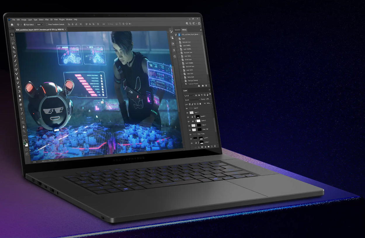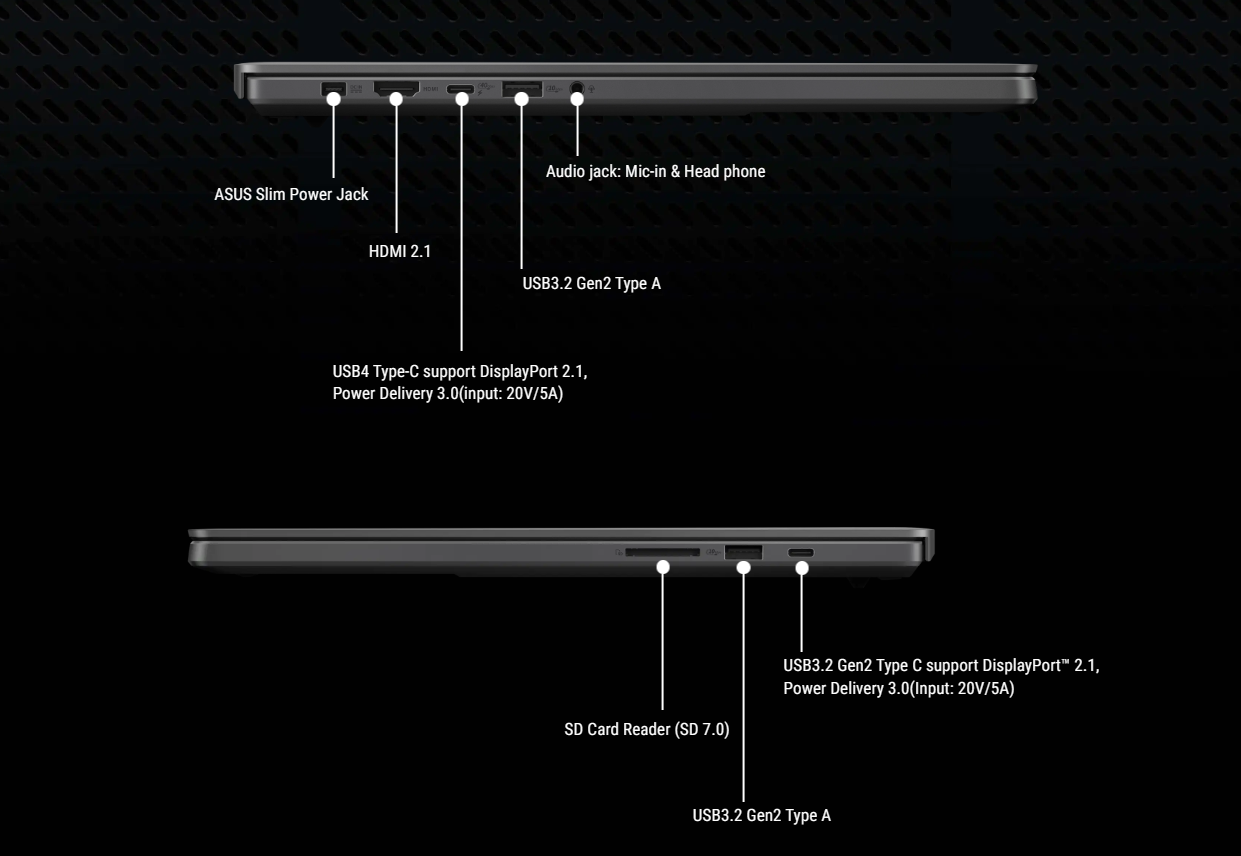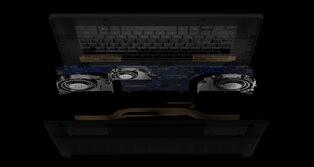 Aby utrzymać tak potężne podzespoły w ryzach, zastosowano system ROG Intelligent Cooling z technologią Tri Fan oraz ciekłym metalem. Udoskonalone rurki cieplne i przeprojektowane wyloty powietrza współpracują ze sobą, aby zapewnić optymalną temperaturę przy zachowaniu niskiego poziomu hałasu. Dzięki temu laptop może pracować z pełną mocą przez długi czas, nie powodując dyskomfortu termicznego użytkownika.