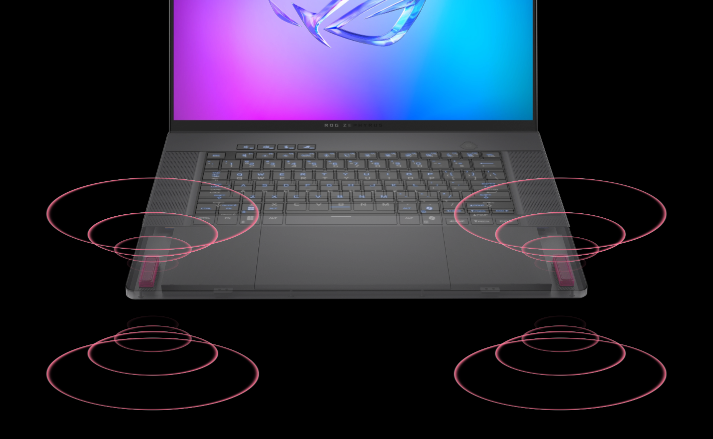 System audio w nowym modelu Zephyrus G16 przeszedł znaczącą modernizację, oferując o 47% wyższą głośność w porównaniu do poprzednich generacji. Sześć głośników, w tym dwustronne woofery, generuje czysty dźwięk z głębokim basem schodzącym do poziomu 100Hz. Niezależnie od tego, czy słuchasz muzyki, czy grasz, jakość dźwięku stoi na najwyższym poziomie, eliminując potrzebę używania zewnętrznych głośników.