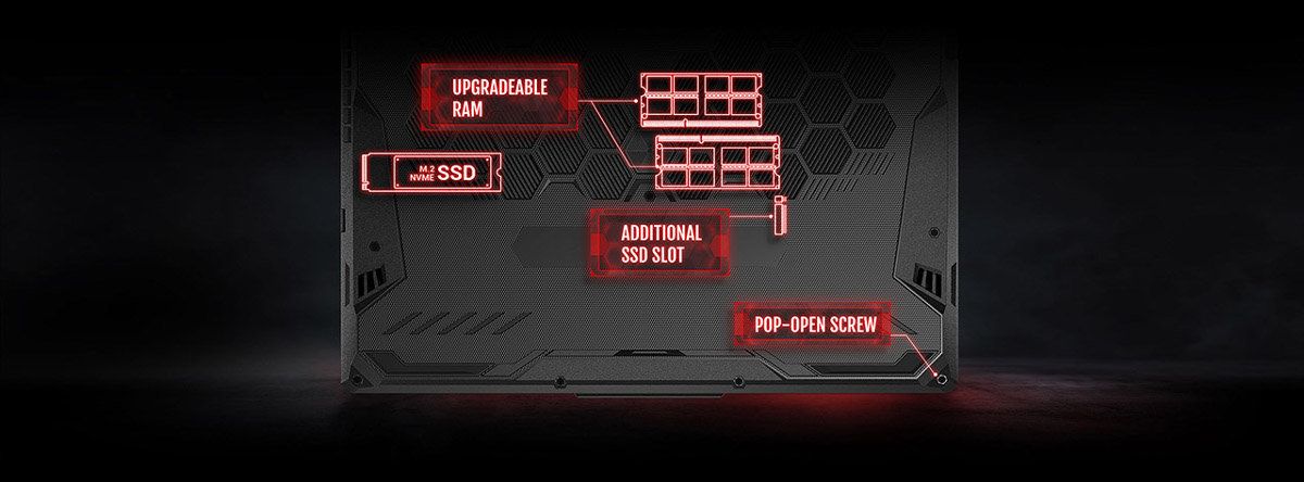 Laptop TUF Gaming A15 został uzbrojony w taki sposób, aby sprostał każdemu wyzwaniu, zapewniając stabilną wydajność podczas rozgrywki, strumieniowania i wszelkich innych zastosowań. Zainstalowany (w maksymalnej wersji) ośmiordzeniowy procesor AMD Ryzen™ serii 4000 może aktywować 12 wątków do napędzania poważnych zadań wielozadaniowych. W parze z niezależną kartą graficzną GeForce GTX™ 1650 Ti jest on w stanie niezawodnie zapewniać wysokie wartości FPS w szerokiej gamie popularnych gier. Przyspiesz czasy ładowania gier z Twojej ogromnej kolekcji, mając do dyspozycji dysk SSD NVMe PCIe® o maks. pojemności 1 TB oraz dodatkowe gniazdo na drugi dysk SSD.
