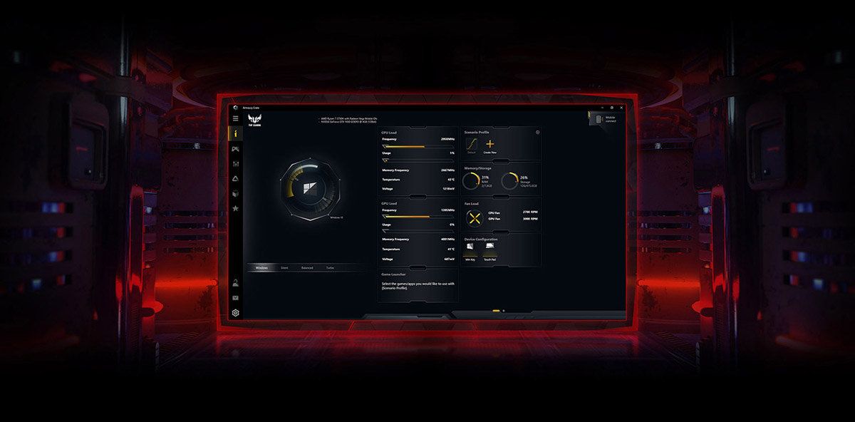 Armoury Crate w jednym miejscu oferuje zarówno sterowanie pracą systemu, jak i oświetleniem, dzięki czemu najważniejsze opcje masz zawsze pod ręką w jednej aplikacji narzędziowej. Korzystając z bogatych opcji personalizacji tej aplikacji, możesz dostosować efekty i wygląd, idealnie dopasować profile gamingowe, a także dokonać ustawień dźwięku, aby wszystko było zgodne z Twoimi preferencjami. Funkcja profili scenariuszy pozwala Ci zdefiniować i dostosować preferowane schematy, które automatycznie dopasują wydajność i inne ustawienia podczas uruchamiania swoich ulubionych aplikacji i gier. Obejmij całkowitą kontrolę nad swoimi wrażeniami i perfekcyjnie dopasuj je do swojego stylu.
