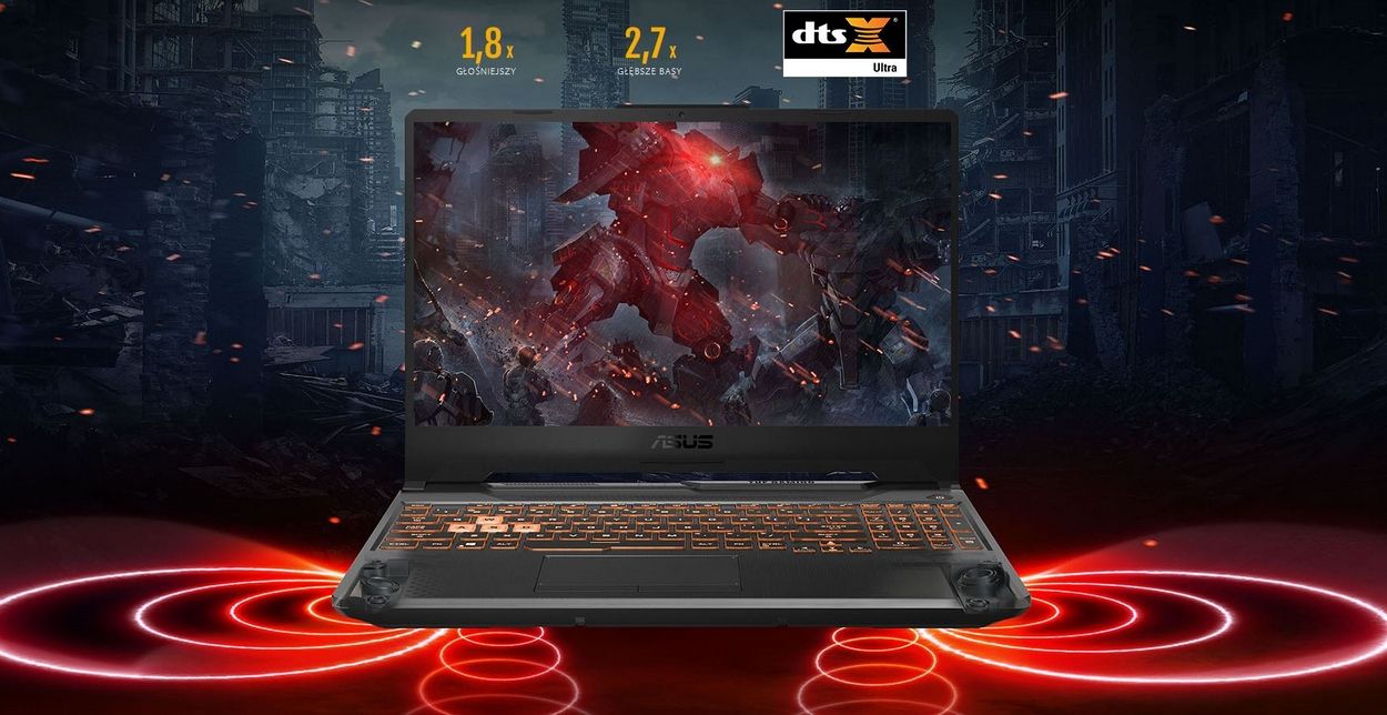 Laptop ASUS TUF Gaming FX506, to doskonale wyposażona maszyna gamingowa. Pomimo użycia mniejszej i bardziej kompaktowej obudowy niż w poprzednim modelu laptopa TUF Gaming, został on wyposażony w baterię o mocy, która pozwoli na dłuższy czas pracy i zabawy. Wydajny samooczyszczający się układ chłodzenia w połączeniu z typową dla sprzętu marki TUF wytrzymałością klasy wojskowej czynią z niego świetne rozwiązanie dla często podróżujących graczy.