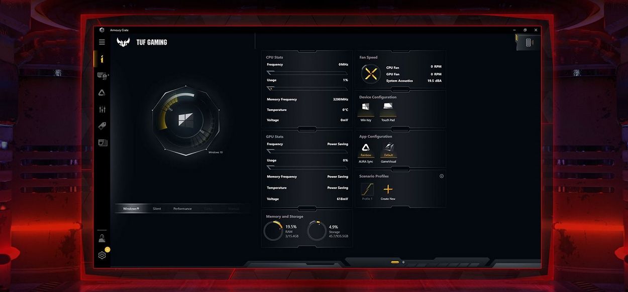Armoury Crate w jednym miejscu oferuje zarówno sterowanie pracą systemu, jak i oświetleniem, dzięki czemu najważniejsze opcje masz zawsze pod ręką w jednej aplikacji narzędziowej. Korzystając z bogatych opcji personalizacji tej aplikacji, możesz dostosować efekty i wygląd, idealnie dopasować profile gamingowe, a także dokonać ustawień dźwięku, aby wszystko było zgodne z Twoimi preferencjami.