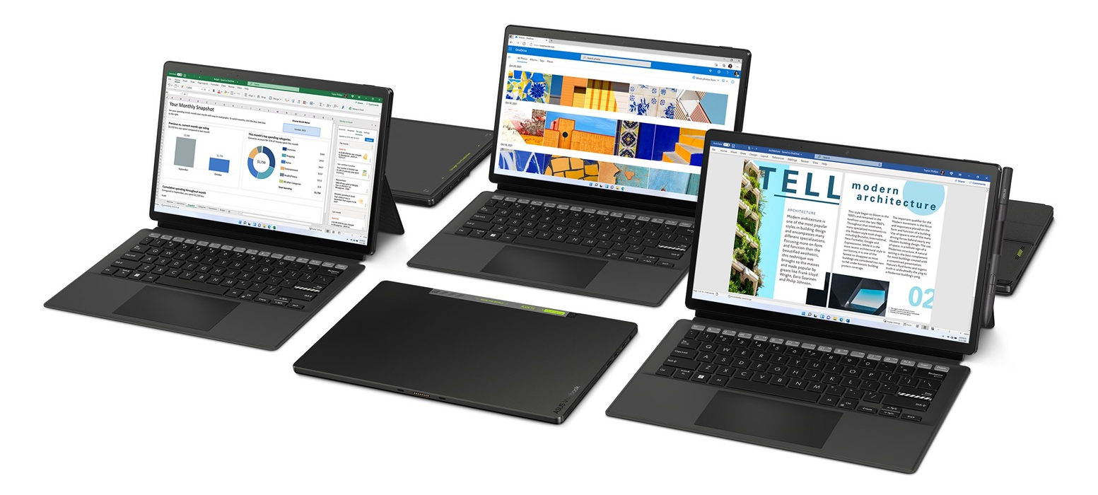 Niezależnie od typu zadania, wszechstronny Vivobook 13 Slate OLED dostosowuje się do Twoich potrzeb. Możesz oglądać treści, rysować, pisać albo tylko słuchać – wybór należy do Ciebie – w trybie orientacji poziomej lub pionowej, z klawiaturą lub bez niej. Tryb tabletu ułatwia sporządzanie notatek w drodze, natomiast tryb laptopa pozwoli Ci błyskawicznie wykonać zadania związane z pracą. Możesz ustawić urządzenie w trybie „na podstawce” w orientacji poziomej do maratonowych sesji oglądania seriali lub najnowszych filmów, a także korzystać w orientacji pionowej do przeglądania mediów społecznościowych. Ta technologia pracuje dla Ciebie!