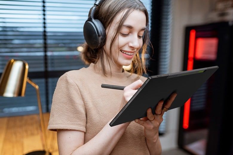 Nigdy nie zostawiaj swojego Vivobooka 13 Slate OLED w domu! Jego supersmukła, superlekka i kompaktowa konstrukcja sprawia, że bez problemu zmieści się w każdej torbie, kiedy chcesz go gdzieś ze sobą zabrać. Przy tym stale zachowuje swój stylowy i atrakcyjny wygląd dzięki zastosowaniu wytrzymałego ekranu dotykowego Corning® Gorilla® Glass z powłoką zapobiegającą powstawaniu odcisków palców, która zapobiega brzydkim smugom i rozmazom.