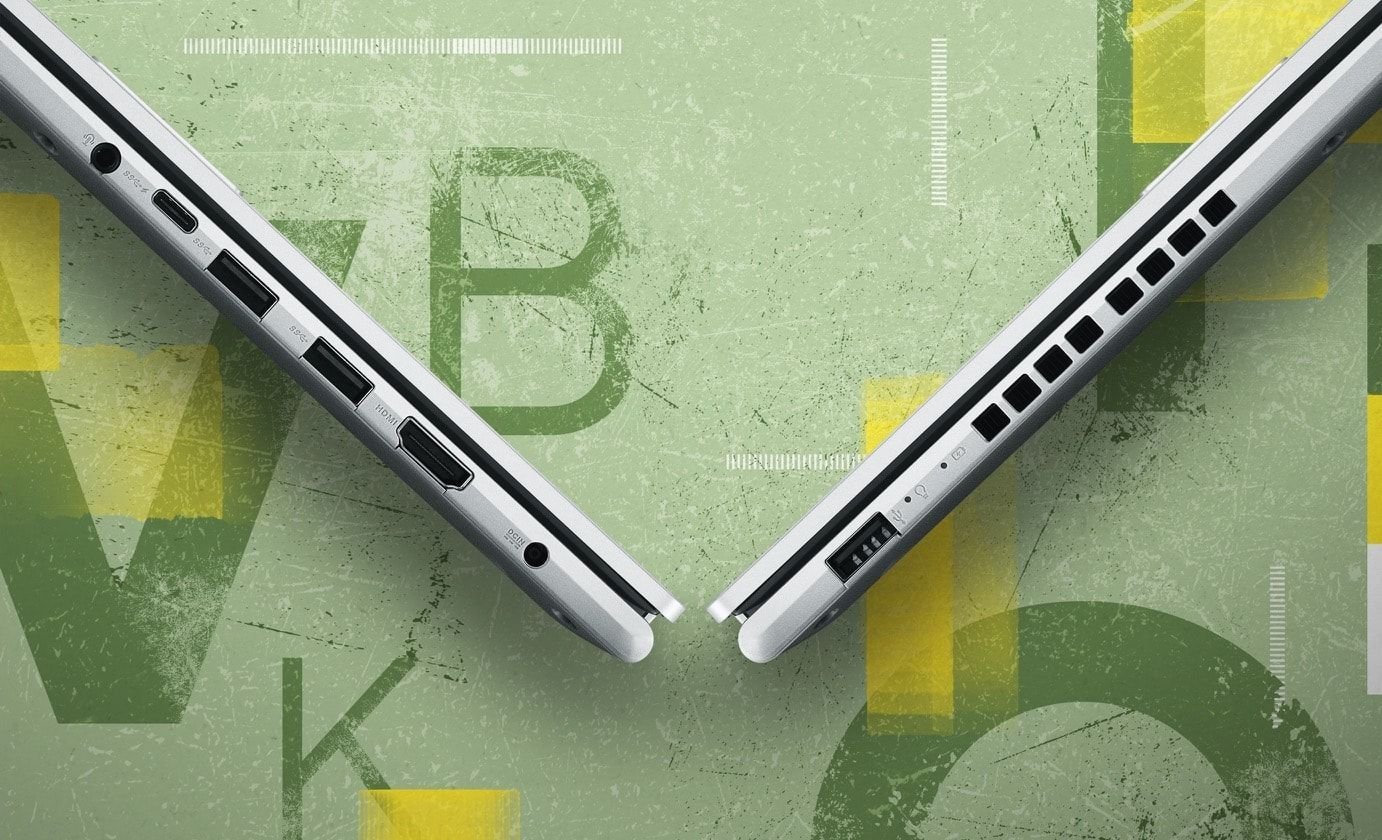 Vivobook 15 zapewnia Ci wszystkie potrzebne połączenia dzięki szerokiemu zestawowi portów wejścia/wyjścia. Dostępny jest port USB-C™ 3.2 Gen 1, dwa porty USB 3.2 Gen 1 Type-A, port USB 2.0, wyjście HDMI® i gniazdo audio jack typu combo, dzięki czemu możesz łatwo podłączyć wszystkie swoje urządzenia peryferyjne, wyświetlacze i projektory.