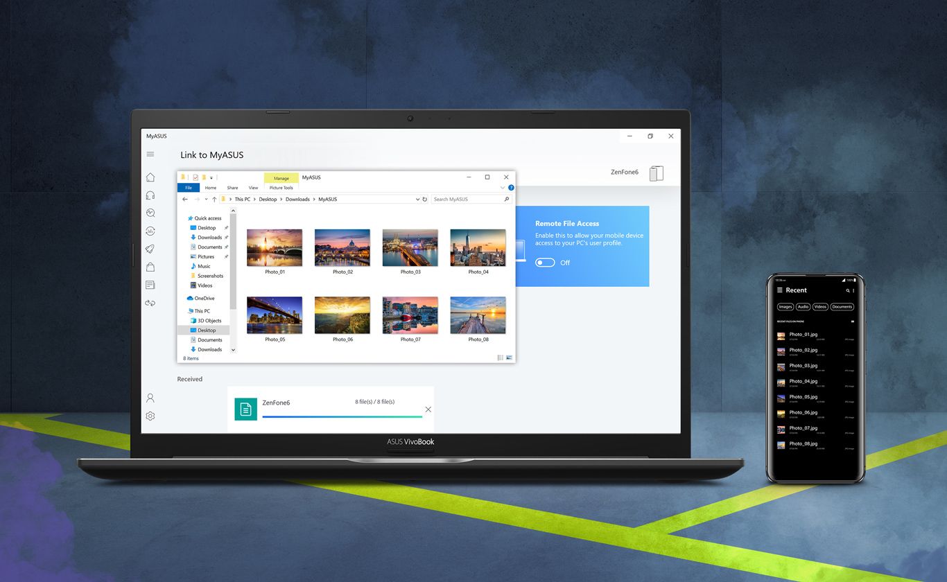 Link to MyASUS to praktyczne narzędzie oferowane przez aplikację MyASUS. Płynnie integruje ono Twój komputer ASUS z urządzeniami mobilnymi, zwiększając produktywność i umożliwiając łatwiejszą pracę wielozadaniową. Zobacz jak bardzo funkcja Link to MyASUS ułatwi Ci życie!