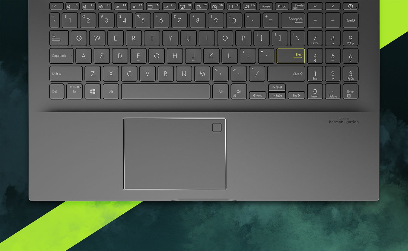 Pełnowymiarowa klawiatura z podświetleniem klawiszy zainstalowana w laptopie VivoBook 15 OLED idealnie nadaje się do pracy w warunkach słabego oświetlenia. Oferuje ona solidną konstrukcję wykonaną w całości z jednego elementu materiału, ze skokiem klawiszy w wysokości 1,4 mm dla zapewnienia wysokiego komfortu pisania.
