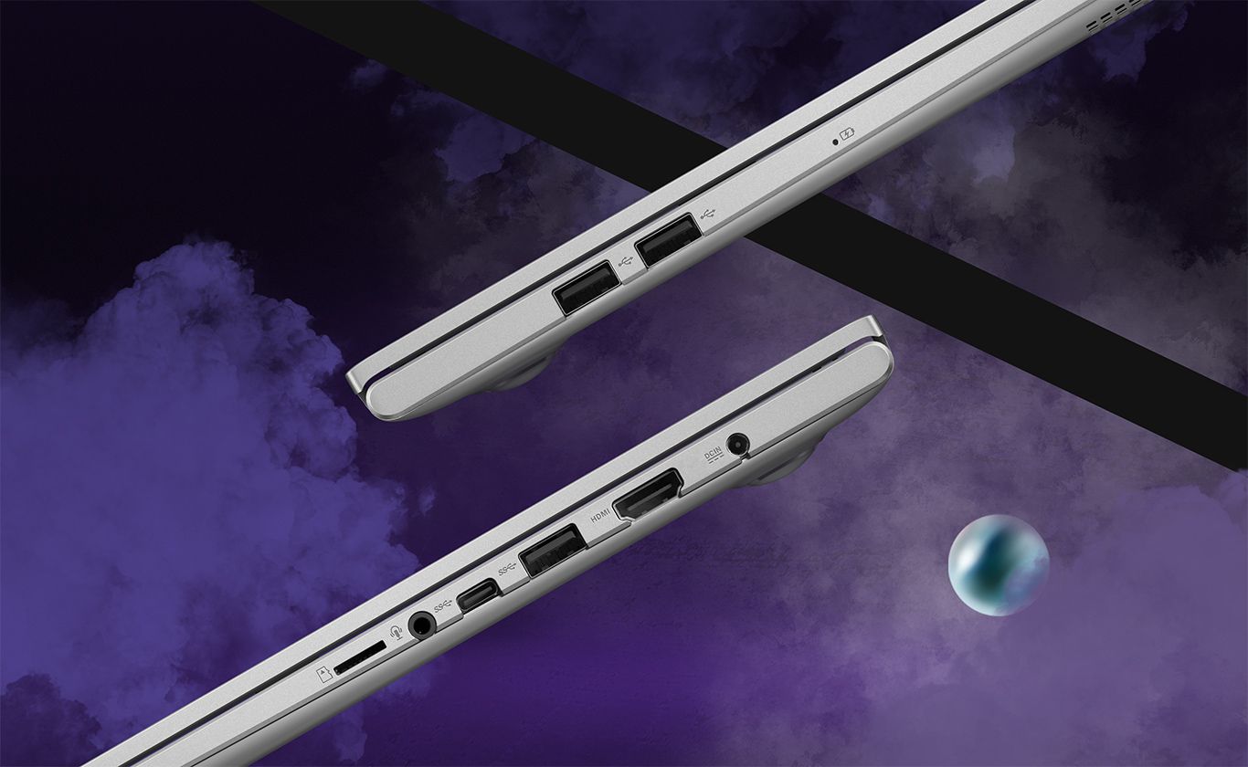 VivoBook 15 OLED jest wyposażony w obustronne gniazdo USB 3.2 Gen 1 Type-C® do podłączania dowolną stroną wtyczki, dzięki czemu możesz wygodnie podłączać do niego różnego urządzenia. Posiada również gniazda USB 3.2 Gen 1 i USB 2.0, wyjście HDMI, a także czytnik kart microSD. Możesz więc łatwo podłączyć wszystkie aktualnie posiadane urządzenia peryferyjne, monitory i projektory.