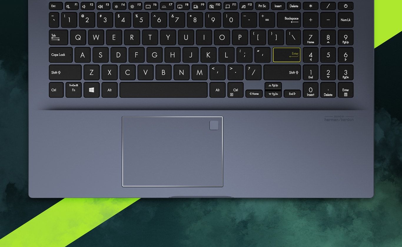 Pełnowymiarowa klawiatura z podświetleniem klawiszy zainstalowana w laptopie VivoBook 15 idealnie nadaje się do pracy w warunkach słabego oświetlenia. Oferuje ona solidną konstrukcję wykonaną w całości z jednego elementu materiału, ze skokiem klawiszy w wysokości 1,4 mm dla zapewnienia wysokiego komfortu pisania.