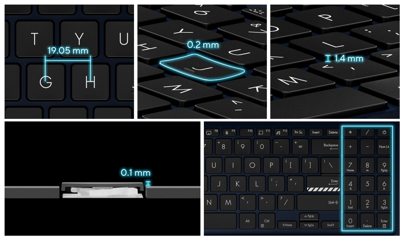 - Pełnowymiarowy układ (19,05 mm): Odstęp między środkami klawiszy jest identyczny jak w klawiaturze stacjonarnej, co gwarantuje najwyższy komfort i dokładność pisania.