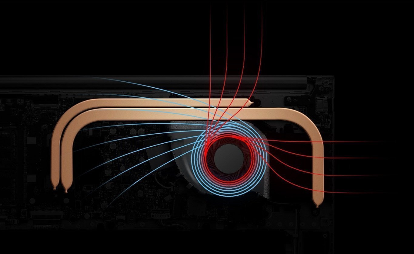 Aby zachować niską temperaturę w każdej sytuacji, Vivobook 16 wykorzystuje dwa ulepszone otwory wentylacyjne, rurkę cieplną, a także wentylator IceBlade, który wydajnie przyspiesza przenoszenie ciepła, zapewniając stabilną wydajność i zapobiegając przegrzaniu.