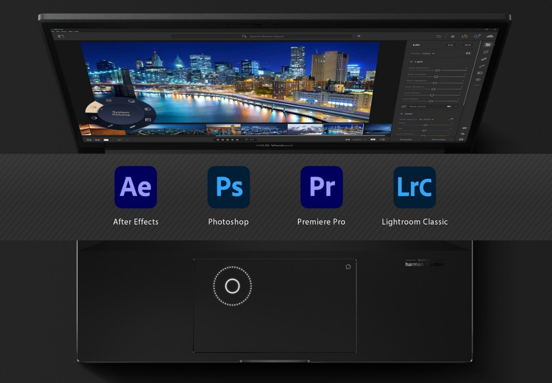 Świat porusza się bardzo szybko, ale dzięki Vivobook Pro 14X OLED Ty możesz poruszać się jeszcze szybciej, przy pełnej immersji w swoich twórczych poszukiwaniach. ASUS DialPad to wirtualny interfejs zintegrowany w touchpadzie, który zapewnia Ci pełną kontrolę nad ustawieniami w kompatybilnym oprogramowaniu do pracy kreatywnej firmy Adobe®, dzięki czemu możesz w pełni skupić się na wykonywanym zadaniu.