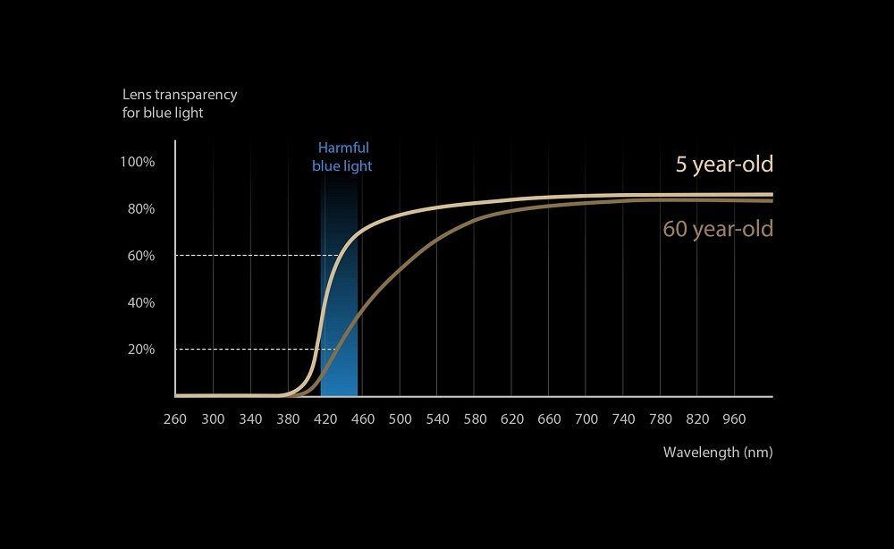 Ponieważ oczy dzieci nie są jeszcze w pełni rozwinięte i mają bardziej przezroczystą soczewkę i rogówkę, szkodliwe światło niebieskie może łatwiej przenikać oko, co z kolei może doprowadzić do przedwczesnego starzenia się siatkówki.