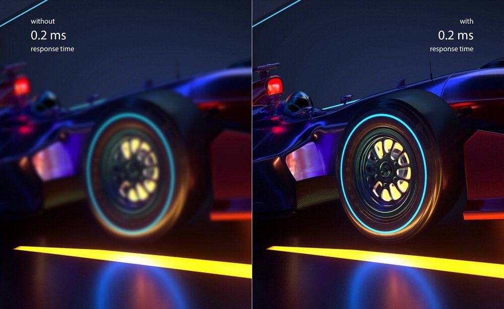 Ekrany ASUS OLED wyróżniają się czasem reakcji 0,2 ms – najkrótszym spośród wszystkich laptopów, a ponadto o 50x krótszym niż w przeciętnych laptopowych ekranach LCD. W praktyce większość laptopów z ekranami LCD charakteryzuje się czasem reakcji pomiędzy 10 a 25 ms. Gwarantuje to bardziej płynne wyświetlanie scen z szybką akcją, rozgrywkę przy niskiej latencji, a także inne subtelne korzyści, takie jak przewijanie tekstu bez rozmywania obrazu.