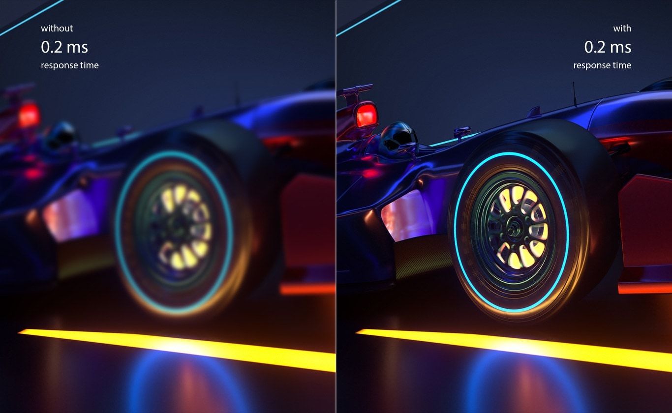 Ekrany ASUS OLED wyróżniają się czasem reakcji 0,2 ms – najkrótszym spośród wszystkich laptopów, a ponadto o 50x krótszym4 niż w przeciętnych laptopowych ekranach LCD. W praktyce większość laptopów z ekranami LCD charakteryzuje się czasem reakcji pomiędzy 10 a 25 ms. Gwarantuje to bardziej płynne wyświetlanie scen z szybką akcją, rozgrywkę przy niskiej latencji, a także inne subtelne korzyści, takie jak przewijanie tekstu bez rozmywania obrazu.