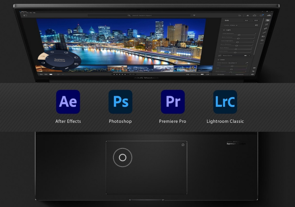 Świat porusza się bardzo szybko, ale dzięki Vivobook Pro 16X OLED Ty możesz poruszać się jeszcze szybciej, przy pełnej immersji w swoich twórczych poszukiwaniach. ASUS DialPad to wirtualny interfejs zintegrowany w touchpadzie, który zapewnia Ci pełną kontrolę nad ustawieniami w kompatybilnym oprogramowaniu do pracy kreatywnej firmy Adobe®, dzięki czemu możesz w pełni skupić się na wykonywanym zadaniu.