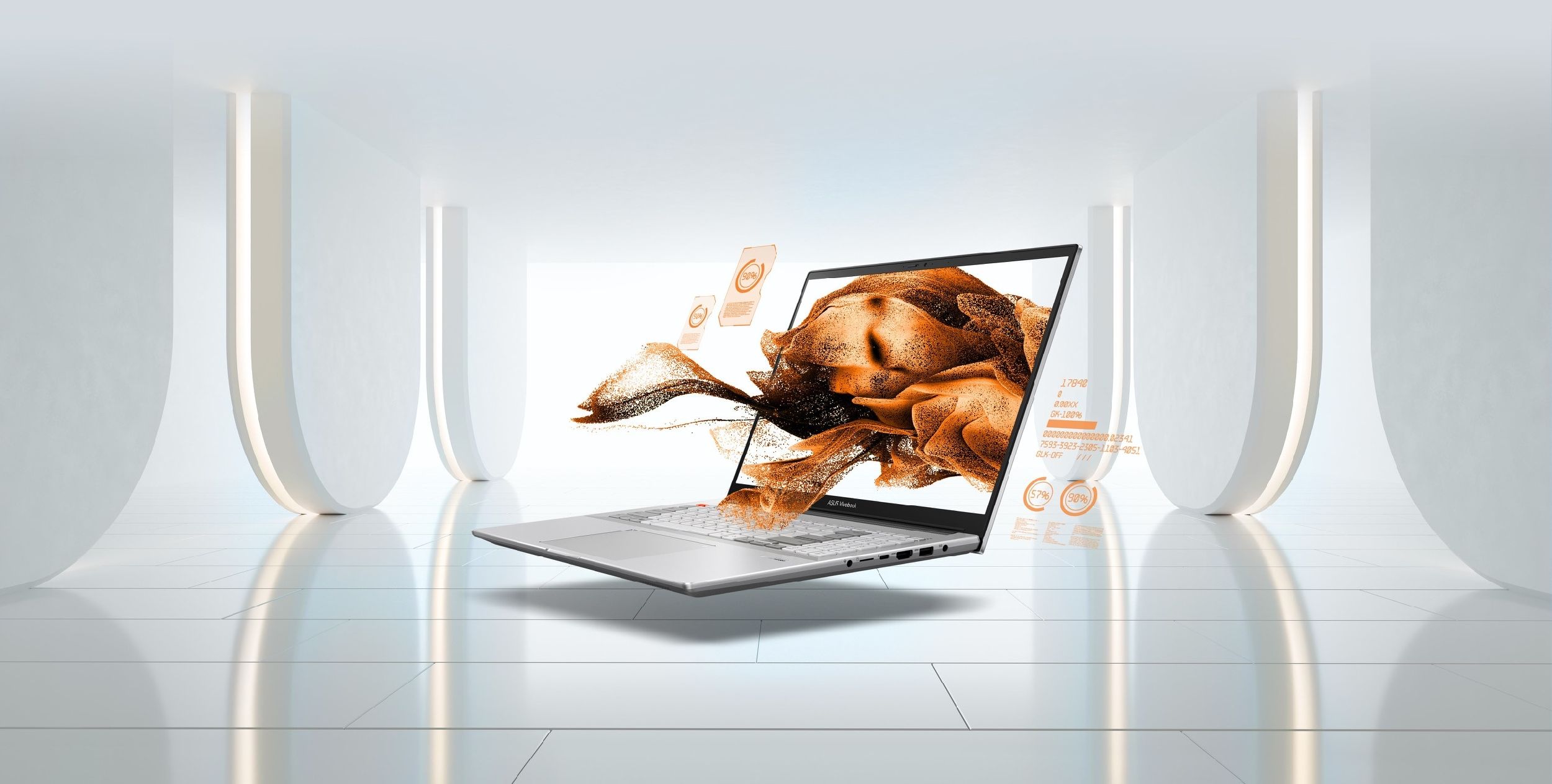 Nadmierne ciepło obniża wydajność, ale Vivobook Pro 16X OLED pozostaje chłodny przez cały czas – dzięki wyjątkowo wydajnemu systemowi chłodzenia z dwoma wentylatorami i dwiema rurkami cieplnymi. Dlatego pomimo oferowania wydajności większej niż kiedykolwiek wcześniej, zaawansowana konstrukcja chłodzenia laptopa Vivobook Pro 16X OLED sprawia, że pozostaje on chłodny – a przez to także cichy – zapewniając maksymalną wydajność, zawsze i wszędzie. Technologia ASUS IceCool Plus maksymalizuje wydajność nawet w smukłej i lekkiej obudowie, a użytkownik ma do wyboru trzy profile wentylatorów w aplikacji MyASUS – w zależności od indywidualnych potrzeb.