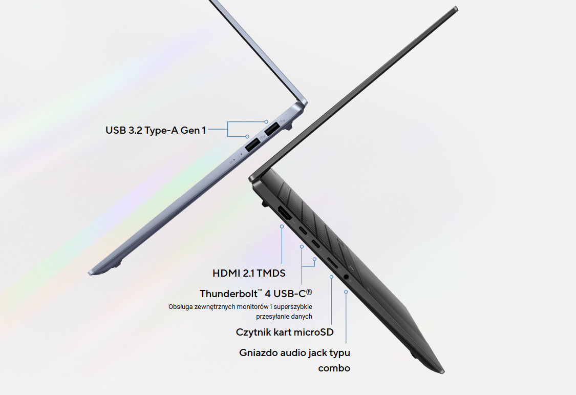 ASUS Vivobook S 14 jest wyposażony we wszystkie porty, których potrzebujesz do podłączenia swoich urządzeń. Niezależnie od tego, czy chcesz podłączyć zewnętrzny monitor, myszkę, klawiaturę, głośnik, czy może zestaw słuchawkowy – zrobisz to bez trudu.