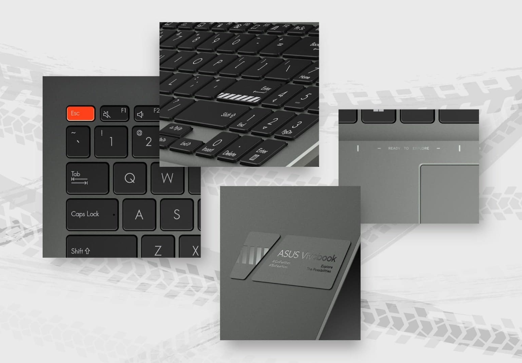 Nowy projekt wypustki z logo i chłodne, miejskie kolory dodają emocji temu całkowicie metalowemu laptopowi. Vivobook S 16X jest zawsze gotowy do odkrywania tego ekscytującego i oszałamiającego świata. Ekspresyjny design jest kontynuowany pod pokrywą, gdzie akcenty w paski na klawiszu Enter zajmują centralne miejsce. Odkryj każdą możliwość dzięki zawiasowi 180°, który znacznie ułatwia dzielenie się fascynującymi pomysłami z otoczeniem. Klawisz ESC z blokami kolorów Warning Orange i napisem Vivobook na podpórce pod nadgarstki kontynuują temat, nawiązując do pionierskiej postawy Twojego nowego wspaniałego świata.
