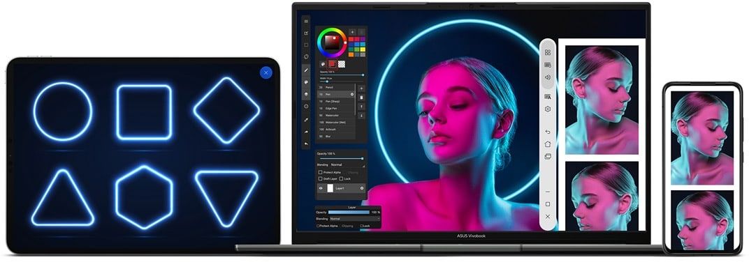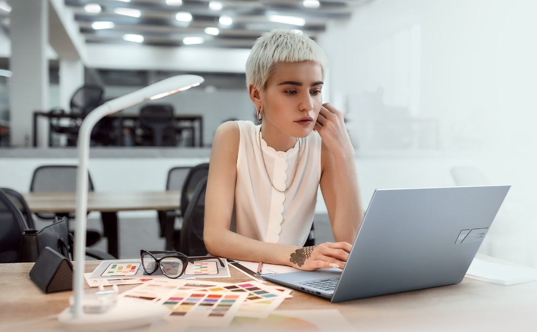 Przenieś swoje wrażenia wizualne na wyższy poziom szczegółowości dzięki szerokokątnemu wyświetlaczowi 16:10 2,5K NanoEdge w Vivobook S 16X. Jego ultrasmukłe ramki i 85,8% stosunek ekranu do obudowy sprawiają, że Vivobook S 16X jest jeszcze bardziej kompaktowy niż kiedykolwiek. Jest zawsze łagodny dla oczu, nawet podczas długich sesji oglądania, dzięki niskiemu poziomowi niebieskiego światła certyfikowanemu przez TÜV Rheinland.