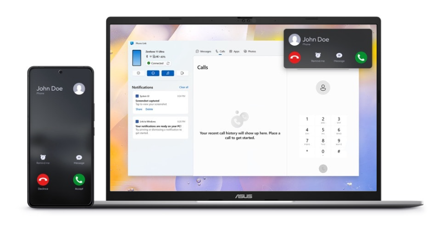 Ciesz się niesamowicie wygodnym życiem dzięki płynnemu przechodzeniu z laptopa na telefon podczas wykonywania połączeń telefonicznych, wysyłania wiadomości tekstowych i uzyskiwania dostępu do plików za pośrednictwem Microsoft Phone Link. Technologia ta usprawnia współpracę międzyplatformową, integrując wszystkie Twoje urządzenia i peryferia w jeden ujednolicony system.