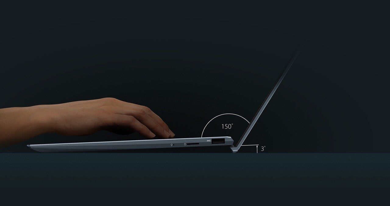 ZenBook 13 OLED posiada precyzyjnie zaprojektowany zawias ErgoLift, który po otwarciu pokrywy automatycznie lekko unosi tylną część laptopa, zapewniając optymalny kąt ustawienia klawiatury do wygodnego pisania. Czynność ta dodatkowo podnosi obudowę dla zapewnienia zoptymalizowanego chłodzenia i lepszej jakości dźwięku.