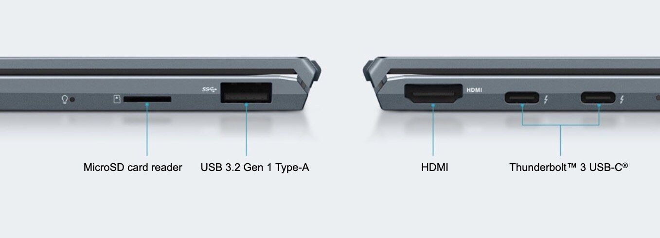 ZenBook 13 OLED na nowo wyznacza granice możliwości ultrasmukłych laptopów, zapewniając Ci kompletny zestaw gniazd wejścia/wyjścia, w tym pełnowymiarowe gniazda HDMI i USB Type-A. Dysponujesz również mocą złącza Thunderbolt™ 4 dzięki zintegrowaniu dwóch gniazd Thunderbolt™ 4 USB-C® z obsługą szybkiego ładowania, zewnętrznych monitorów 4K UHD oraz transferów danych z prędkością do 40 Gb/s. Do wygodnych transferów danych z urządzeń mobilnych możesz również skorzystać z czytnika kart microSD.