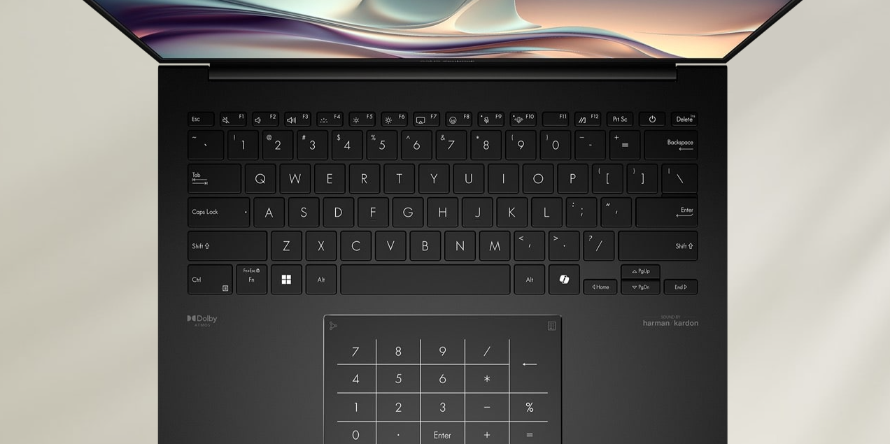 Nasza rewolucyjna technologia Quiet Keyboard (Cicha klawiatura) w elegancki sposób eliminuje uciążliwe dźwięki, zapewniając korzyści zarówno bezpośrednio w Twojej przestrzeni osobistej, jak i dla osób przebywających w pobliżu. Za jednym dotknięciem klawisza skrótu emotikonek nadasz swoim czatom dynamiki. Aby ułatwić wprowadzanie wielu danych liczbowych, touchpad oferuje funkcję wirtualnej klawiatury numerycznej ASUS NumberPad 2.0.