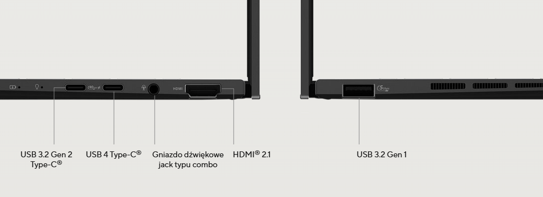 Zenbook 14 OLED zawiera wszystkie niezbędne i gwarantujące pełną funkcjonalność porty, których potrzebujesz, aby cieszyć się szybkimi i niezawodnymi połączeniami w podróży. Dzięki temu unikniesz niewygodnego noszenia ze sobą koncentratorów i adapterów. Dostępne jest nawet wygodne gniazdo audio typu combo!