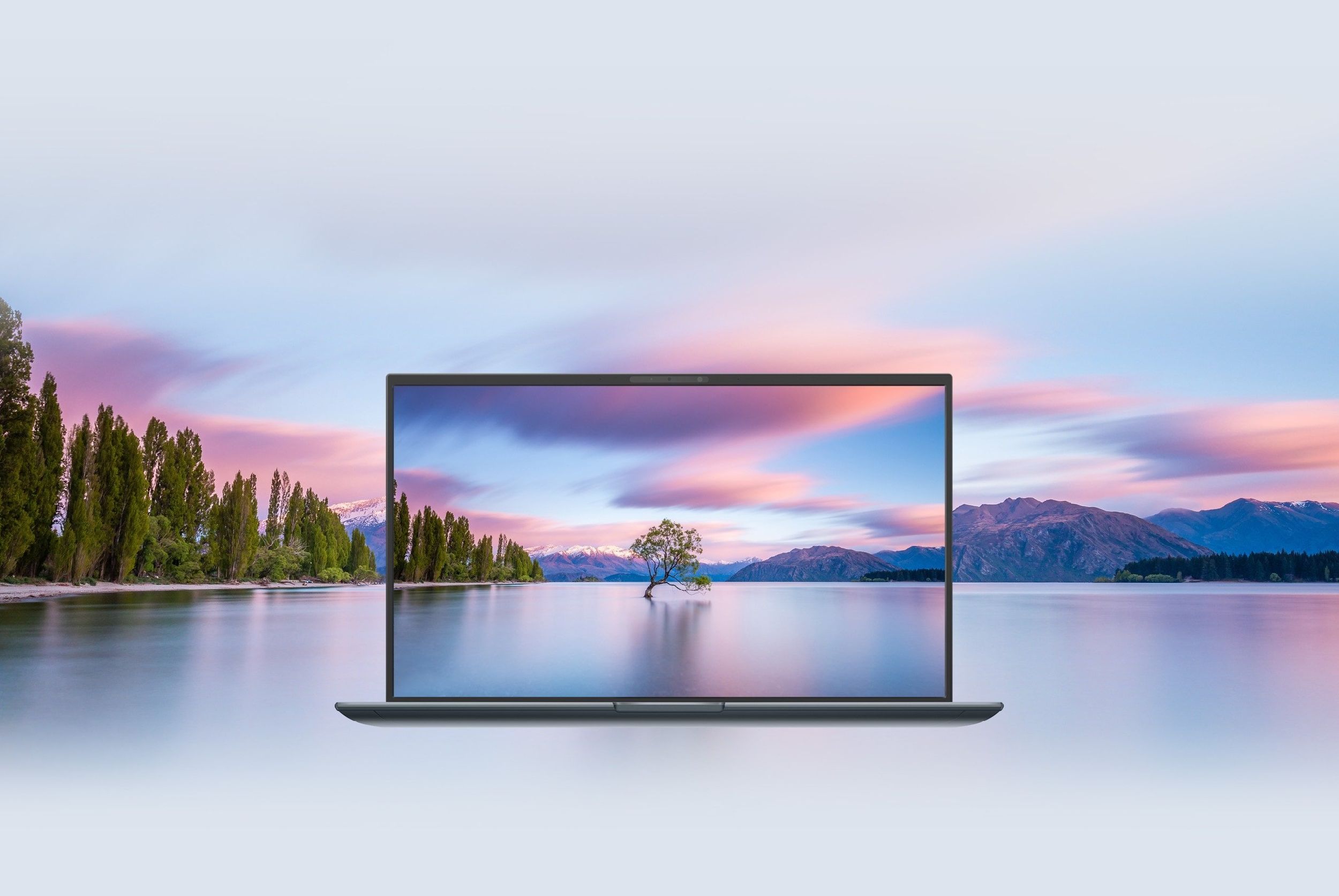 ZenBook 14 jest wyposażony w ekran typu wide-view ze smukłymi ramkami NanoEdge ze wszystkich czterech stron, ze stosunkiem wielkości ekranu do obudowy na poziomie 92%. Gwarantuje to niesamowicie immersyjne wrażenia podczas oglądania. Ekran wyświetla jasny i ostry obraz, a ponadto dysponuje szeroką paletą kolorów ze 100% pokryciem przestrzeni barw sRGB dla zapewnienia żywych kolorów.