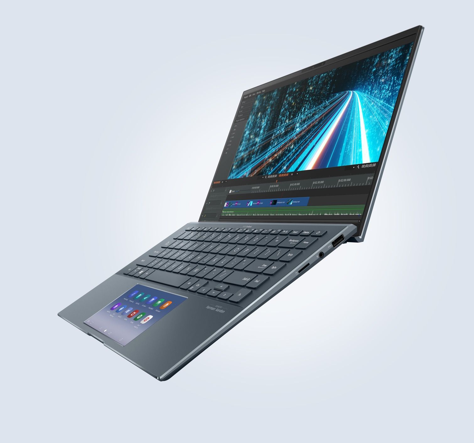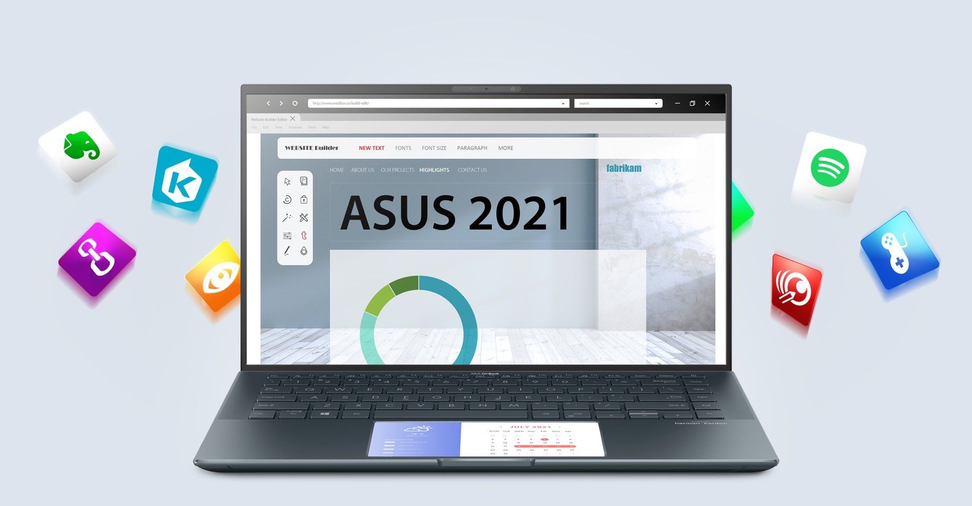 Rozwiązanie ScreenPad™ inteligentnie zmieści wiele aplikacji na swoim 5,65-calowym ekranie dotykowym, a użytkownik może bez trudu dodawać aplikacje do wyświetlacza ScreenPad w celu zapewnienia sobie natychmiastowego dostępu do nich. Nowa i zoptymalizowana funkcjonalność rozwiązania ScreenPad gwarantuje, że Twoje ulubione aplikacje, takie jak Evernote® i Spotify®, będą natychmiastowo doskonale działały na tym dodatkowym ekranie, bez konieczności zastosowania ich wersji opracowanej specjalnie dla ScreenPada. Ponadto firma ASUS ściśle współpracuje z deweloperami zewnętrznymi, w tym np. producentem oprogramowania do obróbki wideo Corel®, w celu zoptymalizowania adaptacyjnych narzędzi ScreenPada i zapewnienia najwyższego stopnia produktywności – przy czym wiele innych funkcji jest jeszcze w przygotowaniu. Przygotuj się na rewolucyjne rozwiązanie ScreenPad!