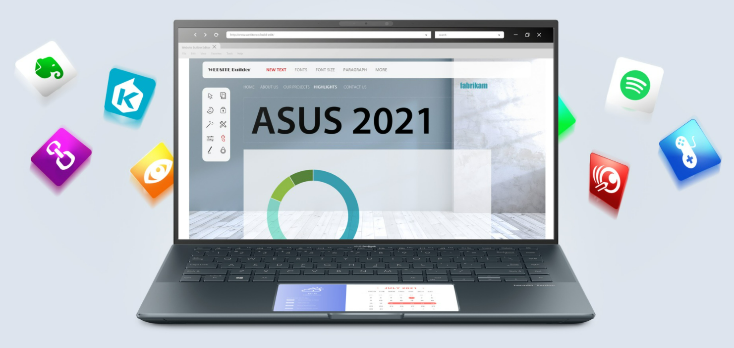 Rozwiązanie ScreenPad™ inteligentnie zmieści wiele aplikacji na swoim 5,65-calowym ekranie dotykowym, a użytkownik może bez trudu dodawać aplikacje do wyświetlacza ScreenPad w celu zapewnienia sobie natychmiastowego dostępu do nich. Nowa i zoptymalizowana funkcjonalność rozwiązania ScreenPad gwarantuje, że Twoje ulubione aplikacje, takie jak Evernote® i Spotify®, będą natychmiastowo doskonale działały na tym dodatkowym ekranie, bez konieczności zastosowania ich wersji opracowanej specjalnie dla ScreenPada. Ponadto firma ASUS ściśle współpracuje z deweloperami zewnętrznymi, w tym np. producentem oprogramowania do obróbki wideo Corel®, w celu zoptymalizowania adaptacyjnych narzędzi ScreenPada i zapewnienia najwyższego stopnia produktywności – przy czym wiele innych funkcji jest jeszcze w przygotowaniu. Przygotuj się na rewolucyjne rozwiązanie ScreenPad!