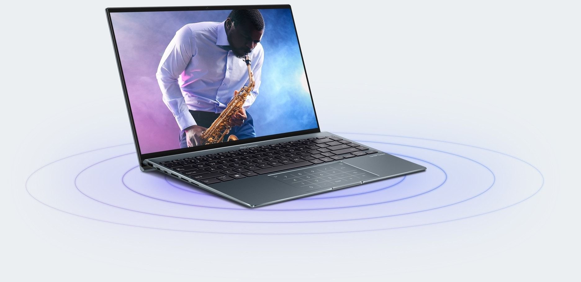 Dla zapewnienia niezrównanej jakości dźwięku Zenbook 14X OLED został wyposażony w system dźwiękowy stereo certyfikowany przez ekspertów od dźwięku z firmy Harman Kardon. Zapewnia on mocny, immersyjny i kryształowo czysty dźwięk, dzięki czemu cieszysz się niewiarygodnie immersyjną rozrywką i doskonałą jakością komunikacji.
