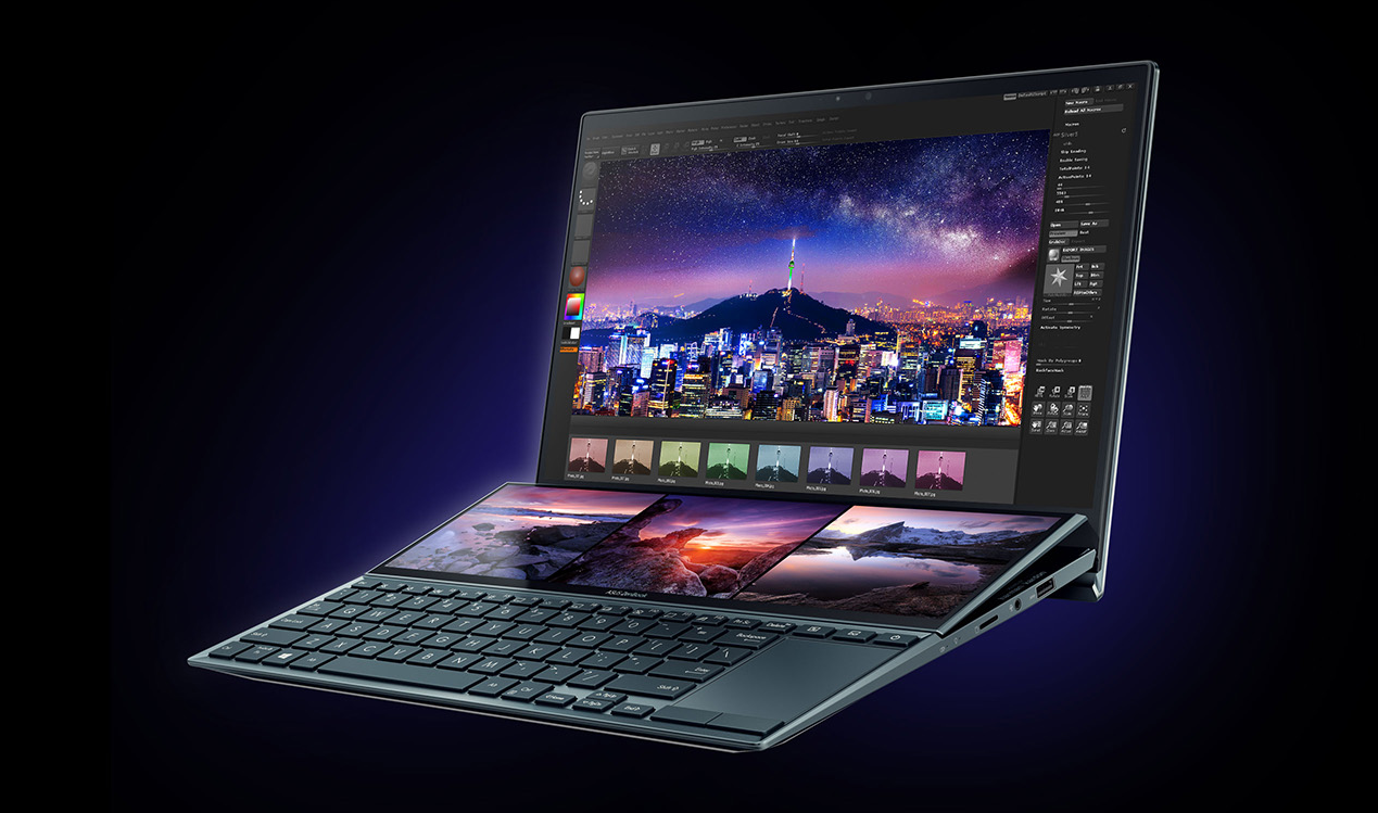 Zainstalowana w laptopie ZenBook Duo 14 karta graficzna NVIDIA GeForce MX450 zapewnia superpłynne efekty wizualne, przyspieszając Twoją pracę z aplikacjami do obróbki zdjęć i wideo. Będziesz cieszyć się ogromnym wzrostem wydajności i lepszą efektywnością zużycia energii w porównaniu do układów graficznych MX poprzedniej generacji. Jeśli jesteś twórcą treści, zachwycisz się wysoką mocą podczas mobilnego przetwarzania treści wizualnych zapewnianą przez laptopa ZenBook Duo 14.