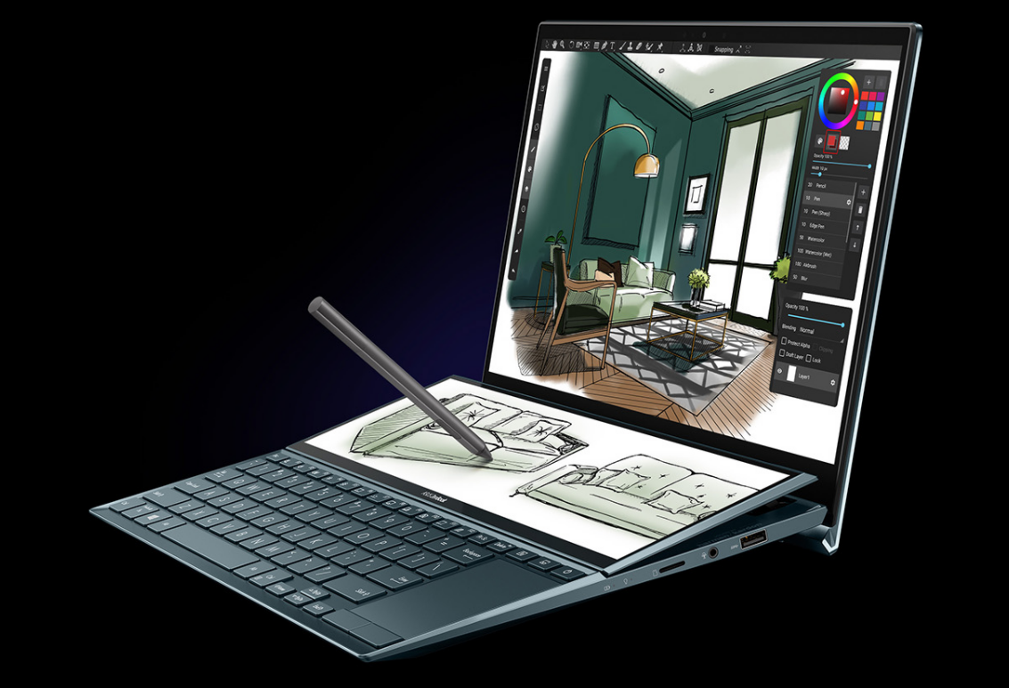 Korzystając z laptopa ZenBook Duo 14 oraz drugiej generacji aktywnego rysika stylus rozpoznającego 4096 poziomów siły nacisku, takiego jak nowy ASUS Pen, możesz dać upust swojej kreatywności. Kiedy ZenBook Duo 14 jest umieszczony na zawartej w zestawie podstawce Duo Stand, nowy mechanizmem nachylania ekranu ScreenPad Plus zapewnia Ci jeszcze bardziej ergonomiczną i stabilną platformę do pisania i rysowania. Sporządzaj notatki, szkicuj swoje pomysły, czy też wykonuj precyzyjną obróbkę grafiki – a wszystko to w najbardziej intuicyjny sposób.