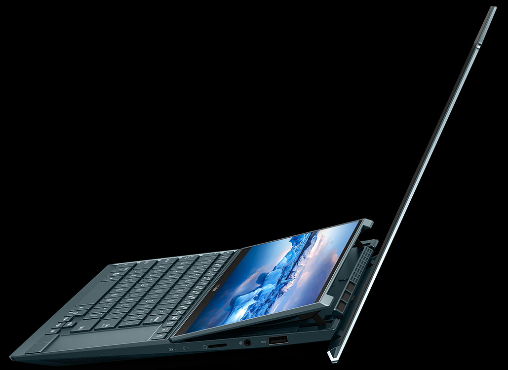 ZenBook Duo 14 został również wyposażony w nowy ScreenPad Plus z mechanizmem nachylania – drugi ekran dotykowy automatycznie unoszony pod kątem 7°, co pomaga zmniejszyć odblaski i refleksy świetlne dla zapewnienia lepszej czytelności. Możesz cieszyć się płynnymi efektami wizualnymi na obu ekranach, korzystając z ułatwionej pracy wielozadaniowej dzięki zintegrowanym aplikacjom zoptymalizowanym do wyświetlacza ScreenPad Plus. Pozwoli Ci to zmaksymalizować wydajność swoich procesów pracy.
